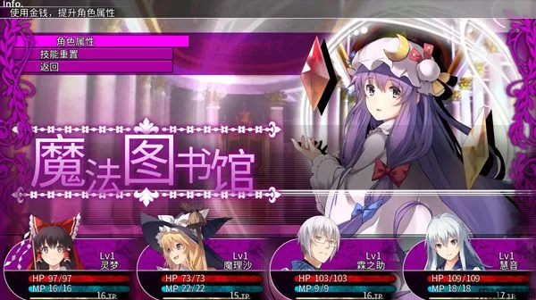 3、魔法图书馆可以对角色的属性和技能进行调整。