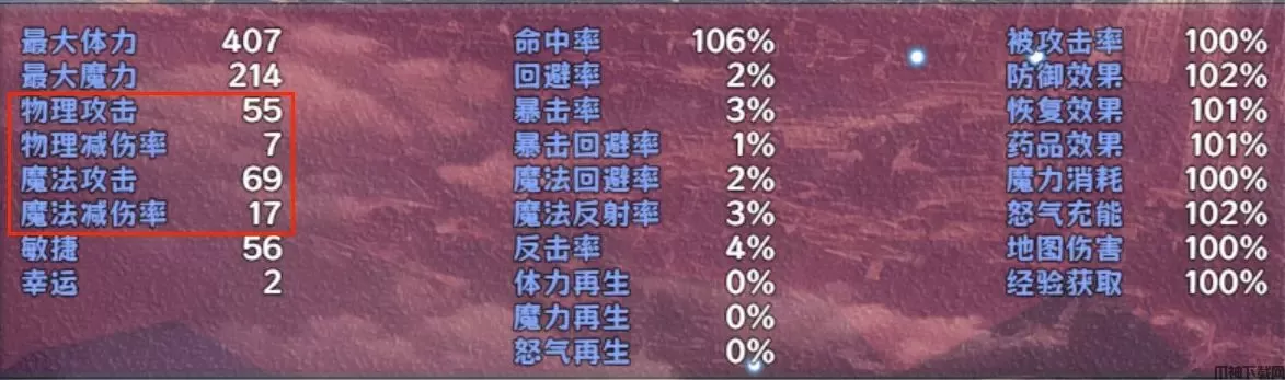 B受到的魔法伤害=A的魔法攻击×(100-B的魔法防御)÷100