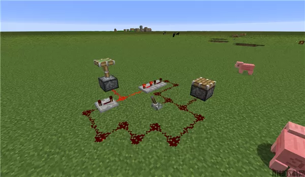 同样的,图中被锁定的红石中继器也没有因为信号输入终端而终止红石信号的提供。