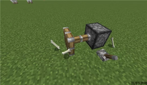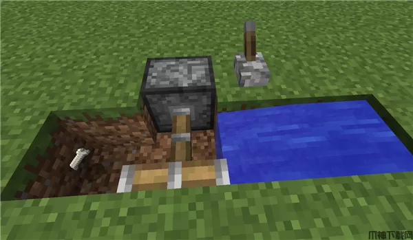 随后,我们需要介绍的是一种常见的应用方块:活塞。活塞分有两种:粘性活塞与正常活塞,两者的区别就在于,粘性活塞可以粘起与其活塞面直接相邻的方块,在活塞臂收回的时候可以将其一并收回,而正常活塞只会将其相邻的方块推开,没有收回功能。