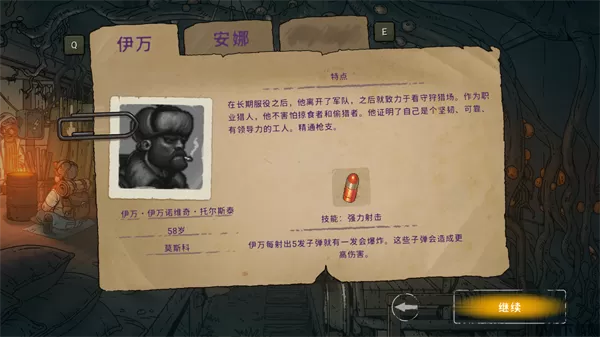 在围墙后使用冲锋枪远程攻击敌人,投掷燃烧瓶造成范围伤害;可以以基础7秒一个的速度收集零件、食物等资源。