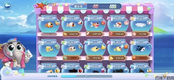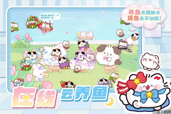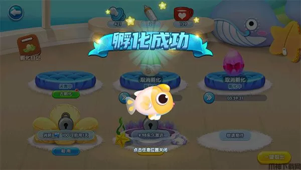 爱唱歌的金钱龟、格斗高手寄居蟹、呆萌无辜的水精灵……多种可爱萌宠放在鱼池中会有不同的技能加成,还可指派他们出游丰富的主题海岛,获取鱼蛋孵化萌鱼,也能和好友组队哦~