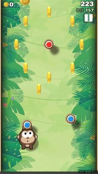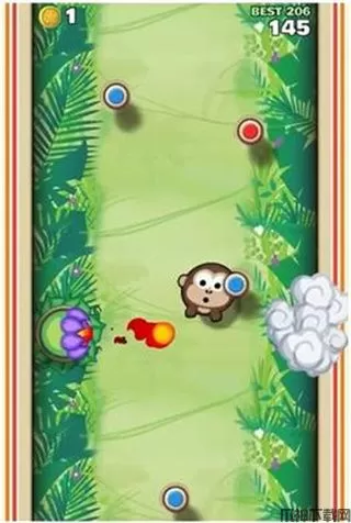 1、其实弹射金刚非常的简单,起始以一只猴子吊挂在一个木桩上为初,通过调整合适的弹射方向促使自己吊挂在上面的其他木桩上即可,期间在弹射的过程中药时刻小心忽隐忽现的障碍,例如说:食人花、移动锯子等等,总之坚持不断向上的精神就对了。