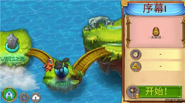 2、进入岛闯关界面,这是新手第一关,之后可以在该界面任意重温已经通过的关卡