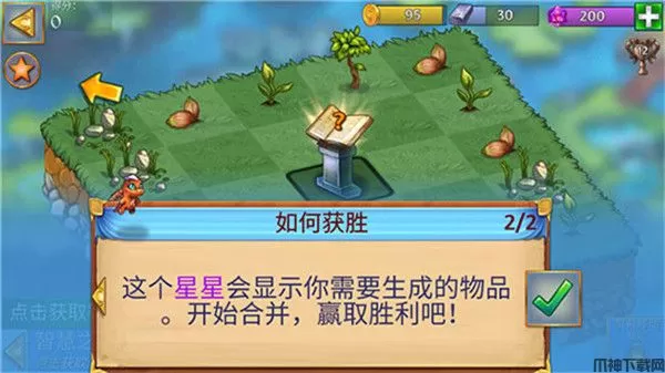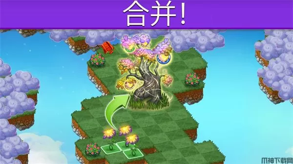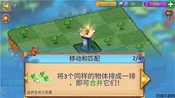 1、在漂亮的世界中随意拖动物体,将同种的3个物体匹配,使其进化为更好的东西
