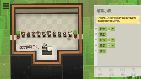 2、享受全新的程序语言乐趣!《人力资源机器》是以组合语言为基础,由单个工人执行;而《七十亿人》采用全新语言,可以让多名工人同时执行程序。