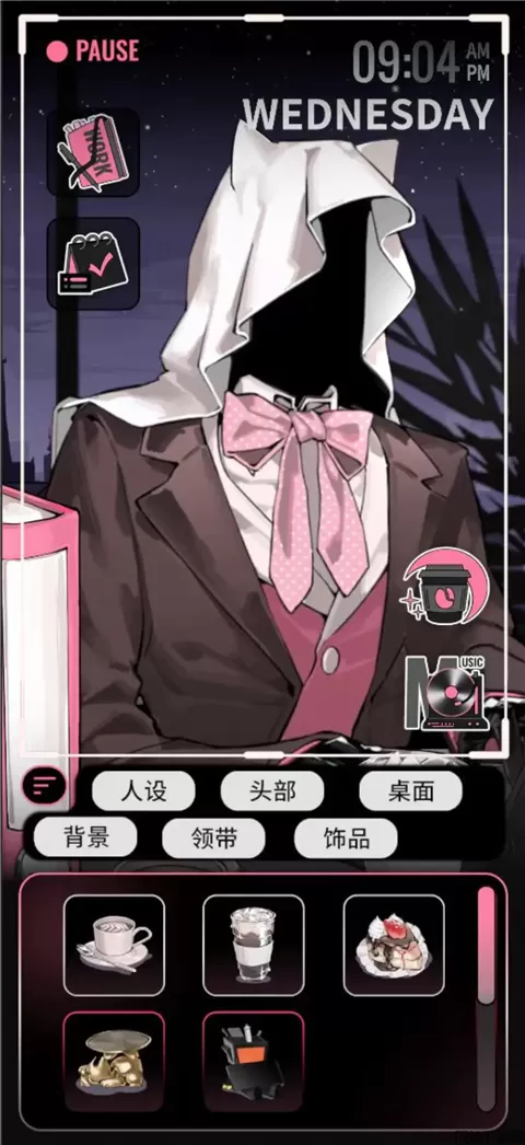 1、通过累积陪伴时长以及各种触发互动解锁更多场景内的不同配件,包括且不限于领带/头部/桌面好物/背景等。
