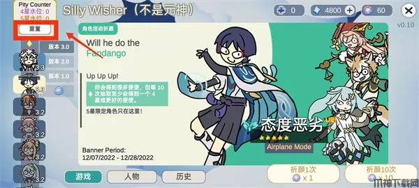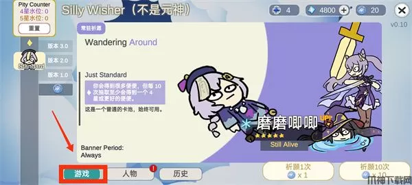 不是原神Silly Wisher中文版是一款恶搞向抽卡游戏,小伙伴们可以在游戏内体验真实的抽卡体验,来看看你是欧皇还是究极非酋!不是原神作为玩家开发的同人模拟抽卡游戏,游戏内所有卡牌随机抽取,让玩家可以尽情验证自己的欧非情况,在不断抽卡中见证运气。