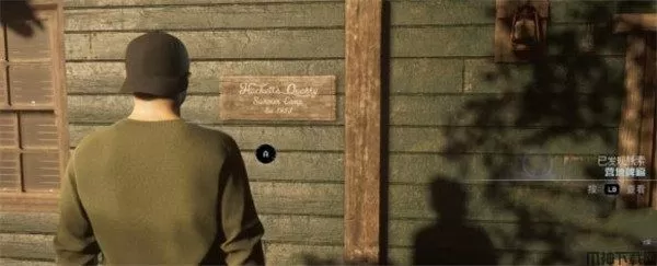 3、调查小屋大门旁边的门牌可以发现新的线索【营地牌匾】。