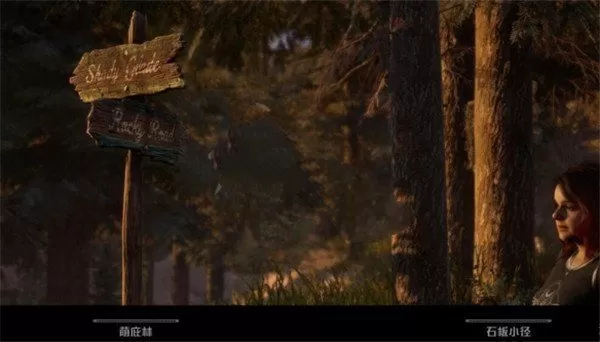 2、当尼克和艾比盖尔来到森林中收集木材时会面临道路选择,选择【荫庇林】。注意这将无法获取塔罗牌【石板小径】。