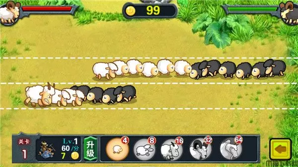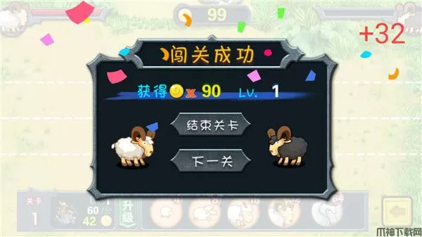 4、获得胜利可以获得金币来升级,升级将更轻松的招募更多山羊。