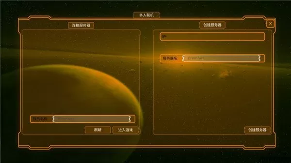 2、输入你的名字,创建服务器,然后选择服务器名字,这里你可以让你的小伙伴输入IP地址就可以进行联机;