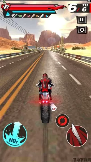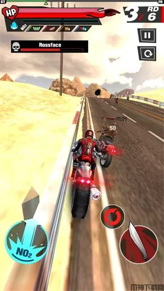 狂暴摩托还加入了传感技术,玩家通过摇晃手机操控摩托在3D世界驰骋,和原作玩法一样,都是抢先对手到达终点,途中可以攻击对手。并且赛道上还会出现一些道具,比如恢复血量和喷气以及武器等等,玩家可以通过道具获得枪械,步枪或者手枪都会有一定记率获得,然后去干掉阻挡你的对手。