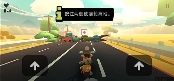 4、当你遇到障碍物时,按住两侧使前轮离地,进行起飞越过障碍;