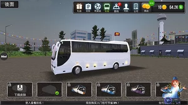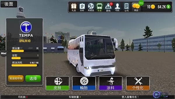 5、完成各种运输任务,赚取更多的钱,解锁更多的任务,获取更多的奖励,购买各种零部件升级自己的公交车,也能购买更多车子