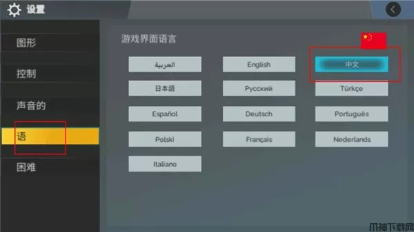 2、进入设置页面,找到语言选项,可以选择游戏内容为中文版游戏内容。
