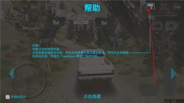 7、车辆卡住是可以使用绞盘来帮助自己,点击绞盘即可激活使用。