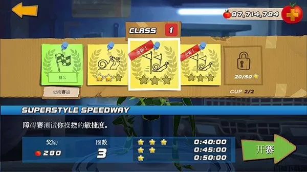 极速蜗牛游戏中文版(Turbo FAST)是一款以蜗牛为主角的休闲竞速游戏,该游戏根据同名梦工厂电影改编。游戏的画面100%还原电影场景,大牌制作,非同小可!这个游戏从名字上就可以看得出,虽然克鲁德一家已被小鸟公司早早推出,但玩过的玩家表示烂到家了,但票房却出奇的好,看来Rovio这辈子也就小鸟这个游戏了。这个游戏跟电影不能是共同起步的,个人还是推荐这款急速蜗牛。而且玩法也非常简单Tito会给你一点提示,帮你获得一只属于自己的坐骑!通过一次又一次的飙车、漂移、急转弯和跳跃到达终点,非常刺激!