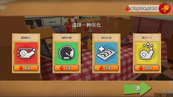 5、开赛之前我们还有选择强化buff的机会,这些buff都通过使用番茄进行购买,但只能选择其中一个。