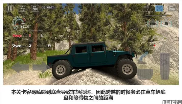 在跨越障碍物的时候容易被石头磕碰底盘,最好的方法是在跨越复杂地形的时挂至一挡低速通过;将视角转到能看见车辆底盘的角度,时刻调整档位和车速避免因为底盘磕碰造成的车辆损坏。另外本关卡时间设置充裕,司机们可以安心的驾驶车辆噢~