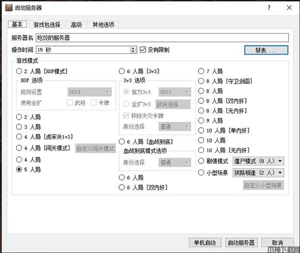 6、拥有丰富的进阶规则使游戏更耐玩:KOF模式、双将模式、暗将模式、国战模式、场景模式、剧情模式、闯关模式、3V3模式、夫妻模式、同将模式、场景模式、僵尸模式、绝境之战、虎牢关模式。