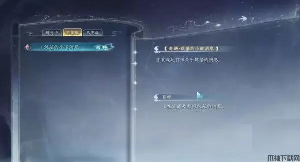 2、初期的时候在玩家达到了练气九层,那么就已经是达到练气期的顶峰时期 ,这时候就需要寻找机会进行突破。在各位继续修行到一定程度时,就会在地图上看到一个紫色的指示标,同时任务栏中会刷新出一个任务,这就是此处突破的必备条件。