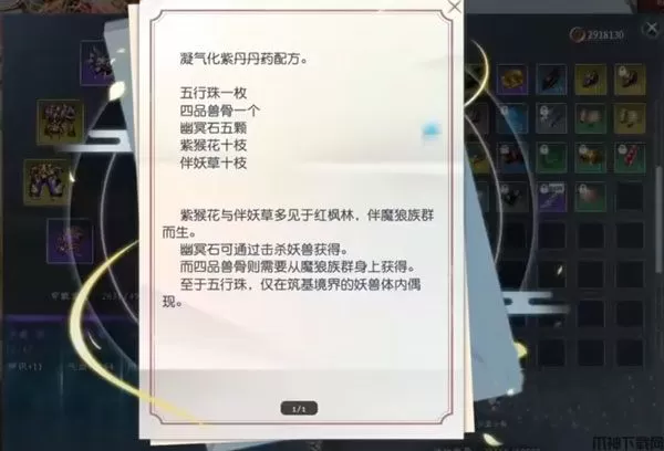 5、如果是想要突破结丹的话,首先也是要先找到对应的任务领取任务道具,他会要求玩家制作一个丹药,这里会提供一个丹方,里面有制作材料的来源及其详细的描述,收集完材料之后就炼制了,成功练成就可以直接使用它了,此时就会开始突破。