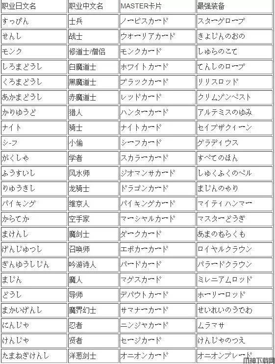 找到她了之后如果职业熟练度为99(必须是当前职业)的话,会拿到一张该职业的MASTER卡片以及职业的最强武器(见下表,只能有一套),即使队伍中有多人99级职业熟练度,一次也只能拿一个最低职业人的,然后再去找她吧。卡片的作用是与他人通信时在信纸签名里加上称号
