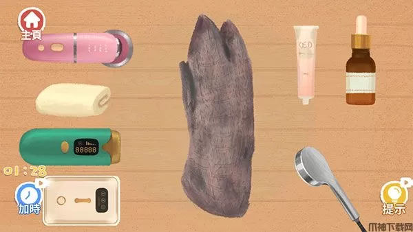 3、小编以“最美猪蹄”关卡为例,点击进入,猪蹄很脏,需要清理,左下角是倒计时,需要在时间结束之前整理完。