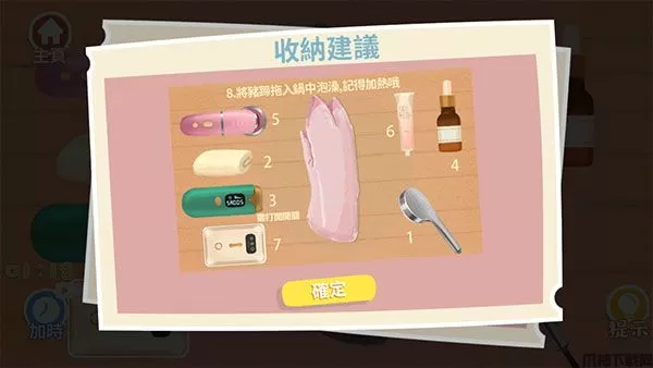 7、收纳成功,可以“返回主页”继续选择关卡或者“下一关”。