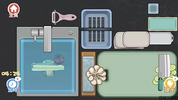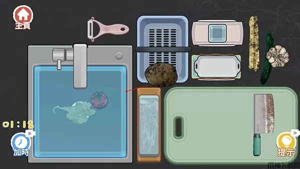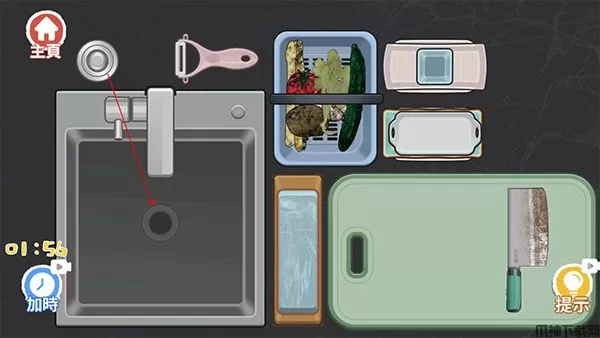 1、进入“亲自下厨”关卡,先将水池堵住。
