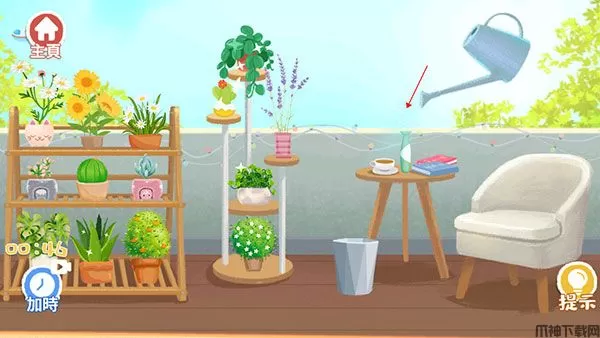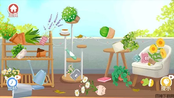 1、花盆、书本、树叶、茶杯以及洒水壶都胡乱的摆放着。