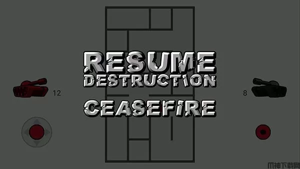5、点击手机的返回按钮即可调出游戏菜单,RESUME DESTRUCTION是返回对局,CEASEFIRE是退出本局。
