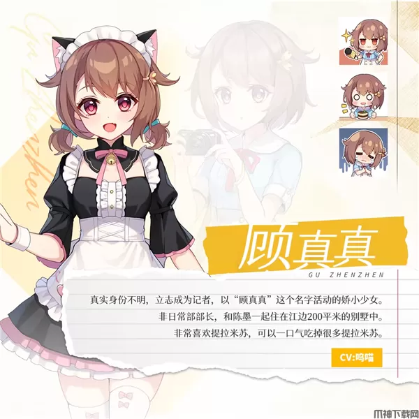 真实身份不明,立志成为记者,以"顾真真"这个名字活动的娇小少女
