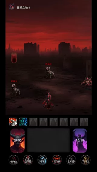 3、游戏的战斗系统很简单,触发式战斗,有八个战斗技能槽位,可以装配技能,攻击特效简单且重复,战斗效果主要靠纯文本来表达。