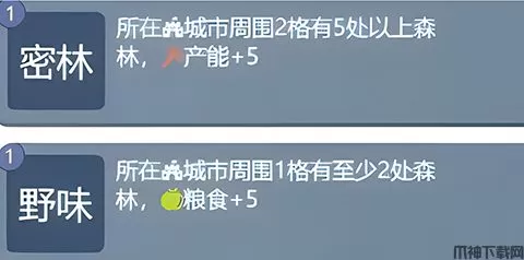 7、最后就是森林的影响,也是可以触发一些早期效果很明显的技能,比如密林和野味。