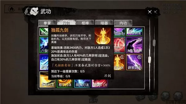少侠的江湖手机版是一款让玩家身临其境的武侠角色扮演单机游戏。在这个广阔而自由的江湖世界里,玩家将扮演一名年轻的侠客,踏上一段充满挑战与冒险的征程。游戏不设限制,你可以选择跟随主线任务,解开一个个令人心动的谜题,面对各路高手的挑战,揭示江湖的秘密;或者你可以选择拜师学艺,从各路宗师身上学习各种武艺,提升自己的实力;又或者你可以独闯江湖,自由探索世界,发现隐藏的宝藏和秘籍,修炼独门神功。
