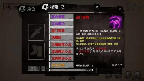 (1)敌人的血量提高200%,攻击和防御增加25%,战斗获得的经验和金钱减少50%,武功升级所需次数增加25%
