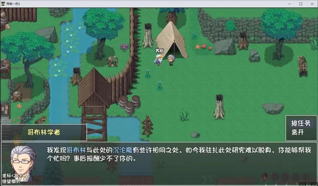 ●与村民对话,选择外面危险开启任务,将魔力药水交给他(如果选第一项,他会死在外面,我们就会少一些声望点。前期的声望点还是比较重要的)