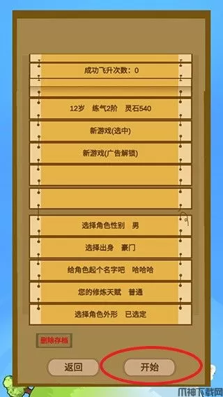 选择人物性别、出身、名字、天赋、外形,点击开始即可。