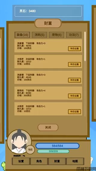 玩家点击下方财富即可查看自己拥有的装备、消耗品等等。