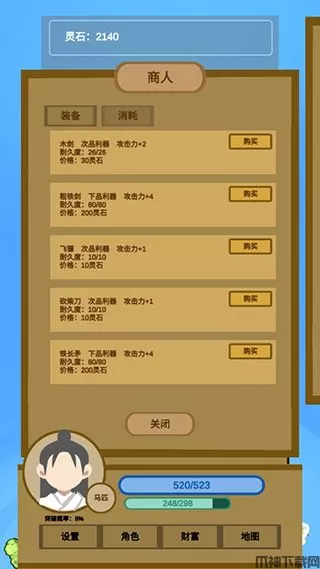 玩家在剧情发展的过程中会遇到商人,可以购买物品,提升自己的实力。
