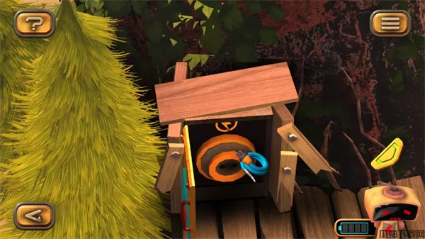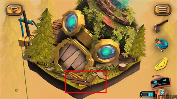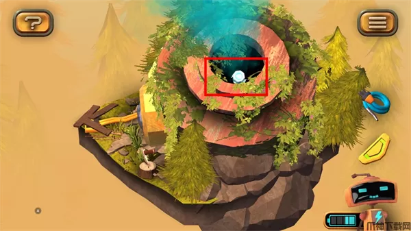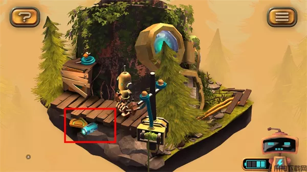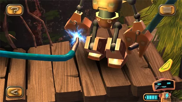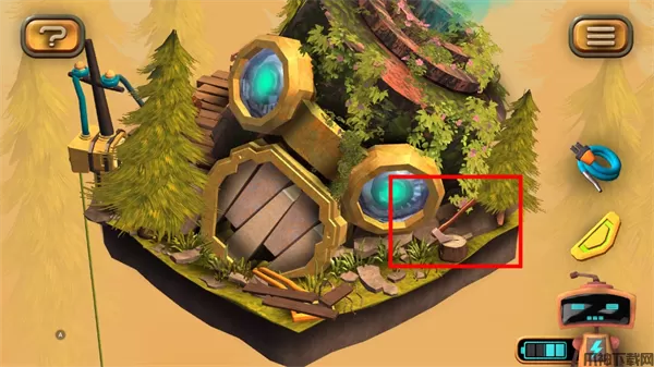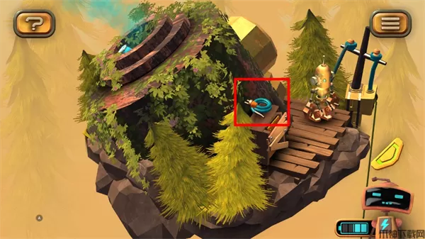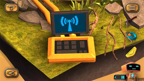 1、在图左下角发现一个电池,点击收集后,机器人增加电量