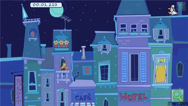 初进游戏,就感觉自己来到了一部深蓝色调的童话世界,寂静的夜晚注定不平凡,因为我们要帮助梦游的大使先生避开危险回到他的住处:卡通画面与吉米漫画极为相似,而儿童画手法所刻画的房屋也并不死板,相反,有些歪歪扭扭的线条显得充满童趣;再加上满天繁星璀璨和小狗汪汪叫等各种逗趣可爱让人身临其境的特色音效,整体给人的感觉无比舒适但又充满紧张感,像在体验一部动画电影一般。
