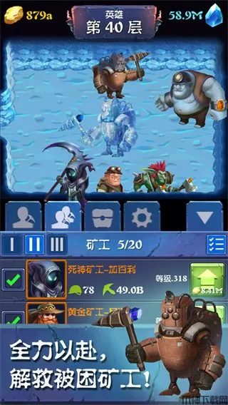 3、挖掘金子、钻石,击碎邪能水晶,升级你的主角并解锁强力技能。
