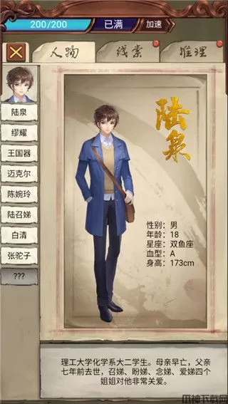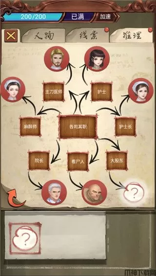 4、主要的角色关系必须赶快梳理一遍哦,这些人际关系十分重要,是解谜的关键。