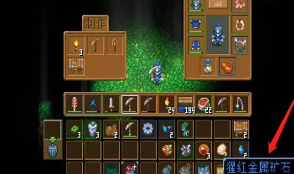 3、最后完成挖掘,就能获得猩红金属矿石。