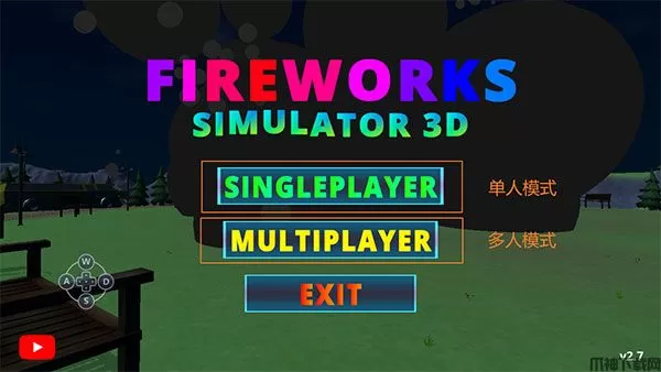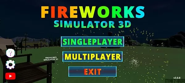 1、进入游戏后,你可以选择游戏模式,这个烟花模拟器3d共有两种游戏模式:【SINGLEPLAYER】单人模式和【MULTIPLAYER】多人模式;