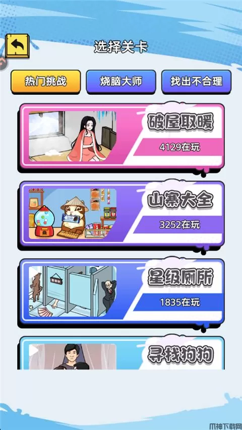 2、里面的每一个小游戏玩法各不相同,提供多个关卡可挑战;