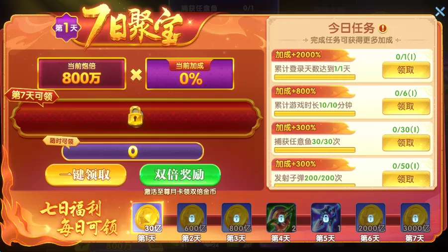 3、“七日聚宝”通过完成每日任务积累加成,最后一天可以直接获取大量金币。
